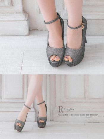 Rechercher ルシェルシェ キャバヒール ビジューアンクルチャーム ストラップ ラメ ハイヒール オープントゥパンプス