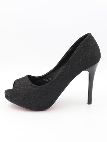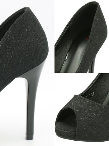 4. キラキラ ラメ シンプル ワンカラー オープントゥ パンプス(ブラック)