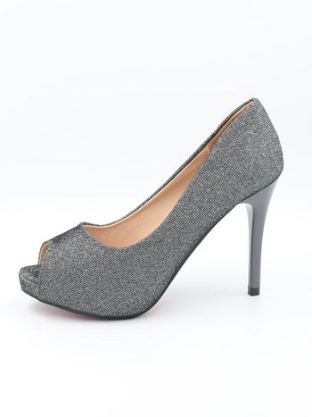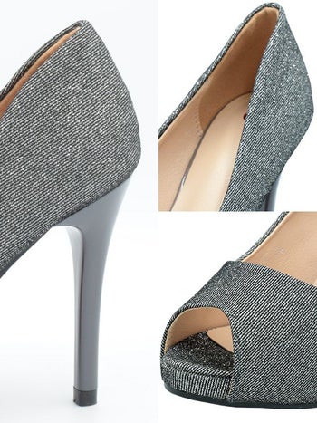 4. ワンカラー ラメ シンプル オープントゥ パンプス(シルバー)