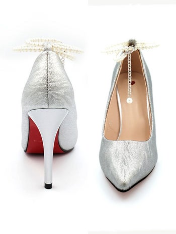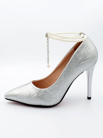 4. パール アンクルストラップ ワッシャー加工 ポインテッドトゥ パンプス(シルバー)