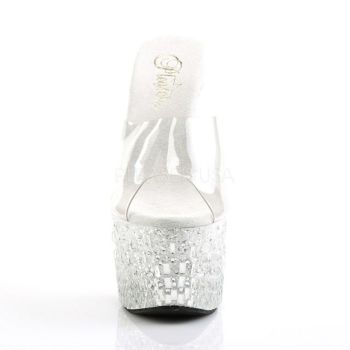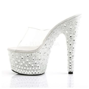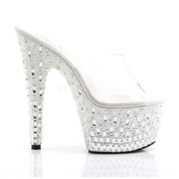 【PLEASER/プリーザー】キャバヒール ビジュー デザイン 厚底 ハイヒール クリア サンダル[シルバー][22.8cm~25.4cm][18cmヒール]