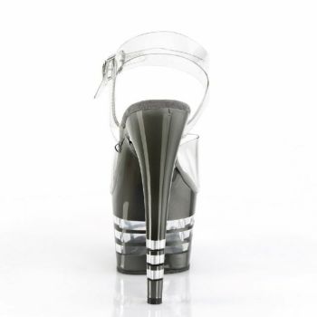 4. 【PLEASER/プリーザー】キャバヒール アンクル ストラップ ブラック ライン 厚底 ハイヒール クリア サンダル [クリア×ブラック][22.8cm~25.4cm][17cmヒール]