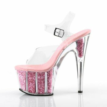 【PLEASER/プリーザー】キャバヒール アンクル ストラップ ピンク ラメ ソール 厚底 ハイヒール クリア サンダル[クリア×ベビーピンク グリッター][22.8cm~25.4cm][17cmヒール]