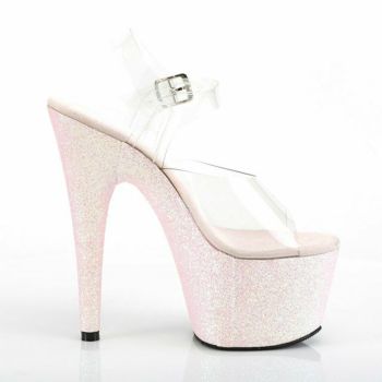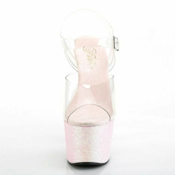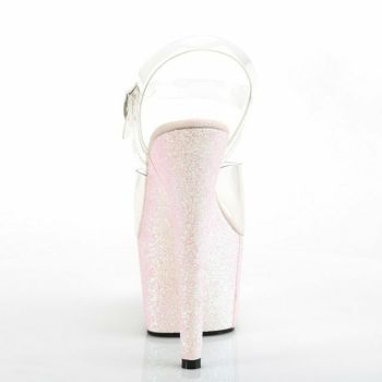 5. 【PLEASER/プリーザー】キャバヒール アンクル ストラップ グリッター ラメ 厚底 ハイヒール クリア サンダル[クリア×オーパル][22.8cm~25.4cm][17cmヒール]