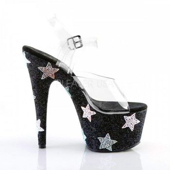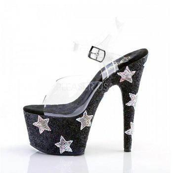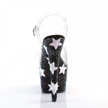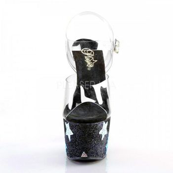 4. 【PLEASER/プリーザー】キャバヒール アンクル ストラップ スター デザイン 厚底 ハイヒール クリア サンダル[クリア×ブラック][22.8cm~25.4cm][17cmヒール]