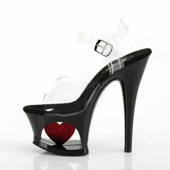 17.5cmヒール☆海外ブランドのキャバドレスにピッタリなストラップ付き厚底クリアサンダル♪ 【PLEASER/プリーザー】キャバヒール ハートモチーフ 厚底 ハイヒール アンクルストラップ クリア サンダル [クリア×ブラック][22.8cm~25.4cm][17.5cmヒール]