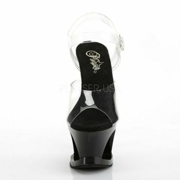 [PLEASER][プリーザー][インポート]ハートモチーフクリアアンクルストラップ キャバサンダル (クリア×ブラック)(17.5cmヒール)[送料無料]