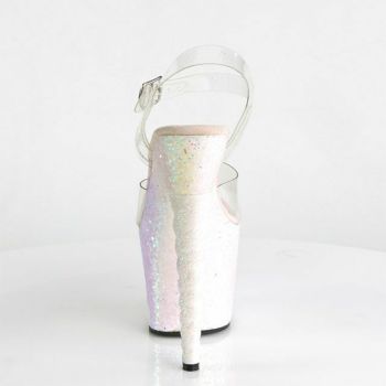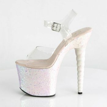 4. 【PLEASER/プリーザー】キャバヒール アンクル ストラップ ラメ 厚底 ハイヒール クリアサンダル [クリア×オパール][22.8cm~25.4cm][18cmヒール]