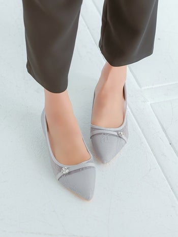 5. サイドシアーデザイン ビジュー アーモンドトゥ パンプス(グレー)