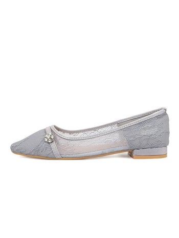 2cmヒール☆低めヒールで安定感抜群♪ サイドシアーデザイン ビジュー アーモンドトゥ パンプス(グレー)
