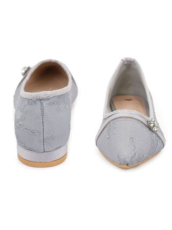 4. サイドシアーデザイン ビジュー アーモンドトゥ パンプス(グレー)