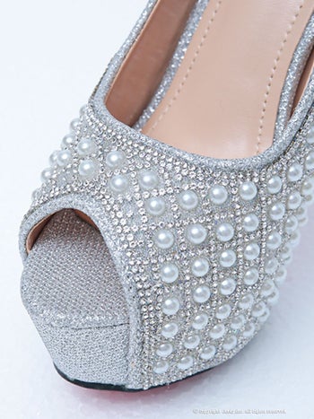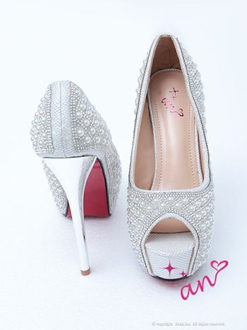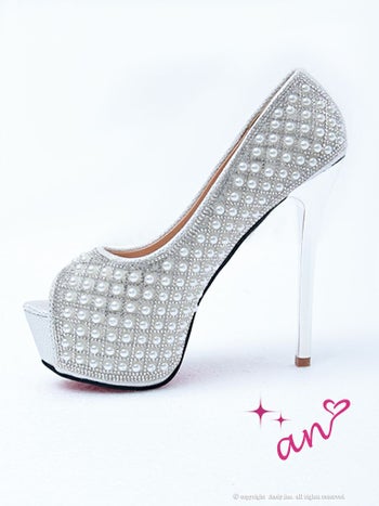 4. 【an/アン】パール ビジュー ピンヒール オープントゥ パンプス (aocsh042)