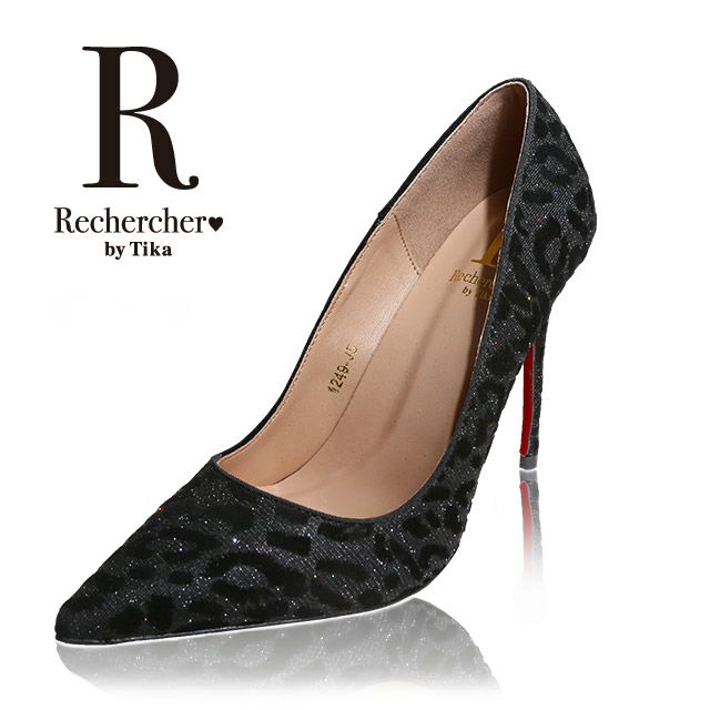 4. 【Rechercher/ルシェルシェ】キャバヒール ヒョウ柄 ポインテッドトゥ パンプス[ブラック][22.5cm~25.0cm][10cmヒール]