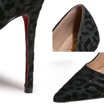 10cmヒール☆レオパード柄が可愛いキャバドレスにピッタリなパンプス♪ 【Rechercher/ルシェルシェ】キャバヒール ヒョウ柄 ポインテッドトゥ パンプス[ブラック][22.5cm~25.0cm][10cmヒール]