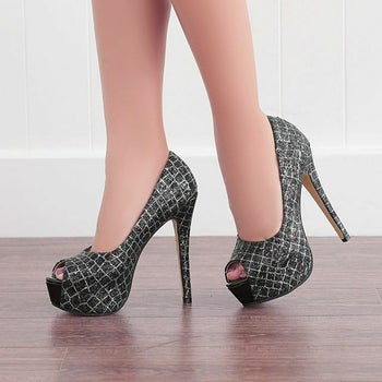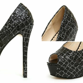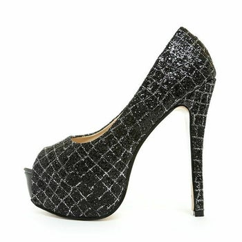 4. 【Rechercher/ルシェルシェ】キャバヒール 格子デザインストーン パンプス[ブラック][22.5cm~25.0cm][14cmヒール]