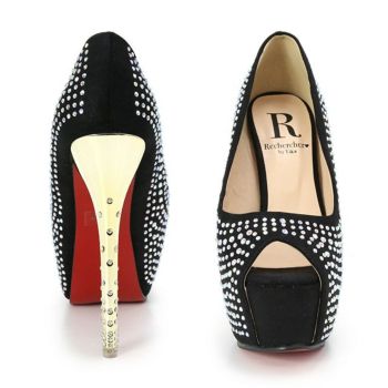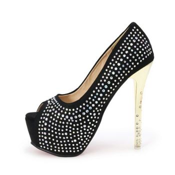 きらめくビジューを全体的に散りばめたオープントゥパンプス。