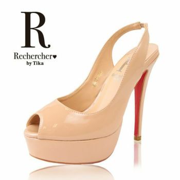 4. 【Rechercher/ルシェルシェ】キャバヒール シンプル エナメル オープントゥ サンダル[ベージュ][22.5cm~25.0cm][14.5cmヒール]