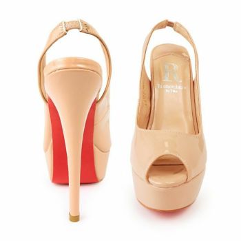 14.5cmヒール☆シンプルでコーデを選ばないキャバドレスにピッタリなパンプス♪ 【Rechercher/ルシェルシェ】キャバヒール シンプル エナメル オープントゥ サンダル[ベージュ][22.5cm~25.0cm][14.5cmヒール]