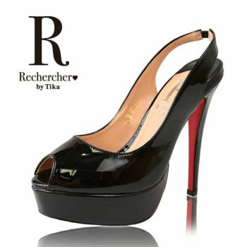 4. 【Rechercher/ルシェルシェ】キャバヒール シンプル エナメル オープントゥ サンダル[ブラック][22.5cm~25.0cm][14.5cmヒール]