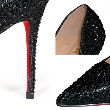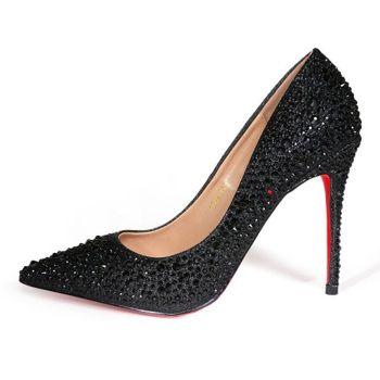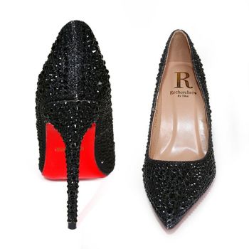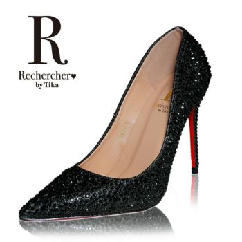 10cmヒール☆キラキラと輝くビジューが可愛いキャバドレスにピッタリなパンプス♪ 【Rechercher/ルシェルシェ】キャバヒール ビジュデザイン ポインテッドトゥ パンプス[ブラック][22.5cm~25.0cm][10cmヒール]