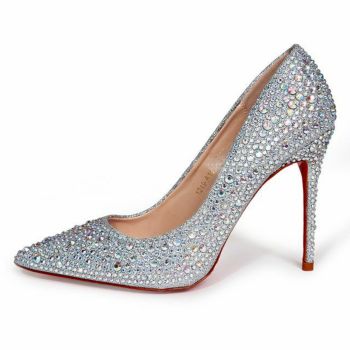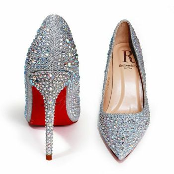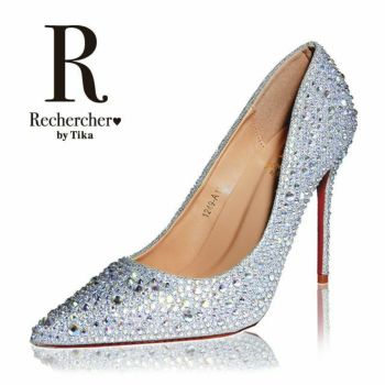 10cmヒール☆キラキラと輝くビジューが可愛いキャバドレスにピッタリなパンプス♪ 【Rechercher/ルシェルシェ】キャバヒール ビジュデザイン ポインテッドトゥ パンプス[シルバー][22.5cm~25.0cm][10cmヒール]