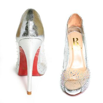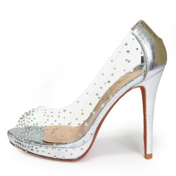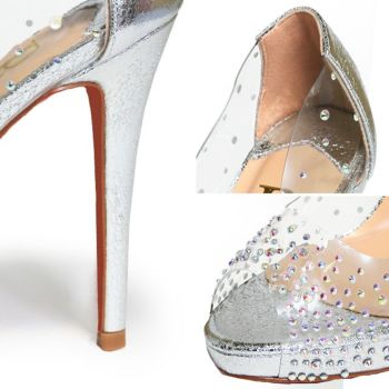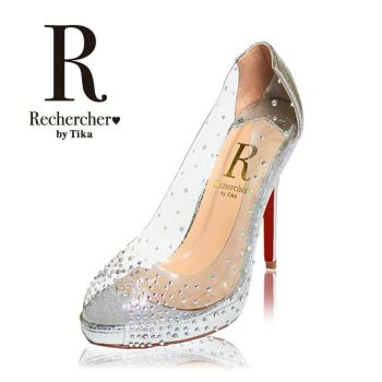 【Rechercher/ルシェルシェ】キャバヒール ビジュデザイン クリア オープントゥ パンプス[シルバー][22.5cm~25.0cm][12cmヒール]