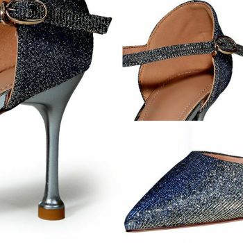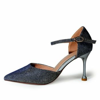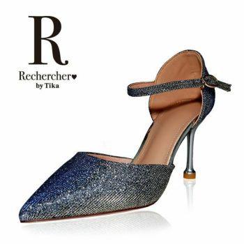 【Rechercher/ルシェルシェ】キャバヒール ストラップ ポインテッドトゥ パンプス[ブルー][22.5cm~25.0cm][8cmヒール]