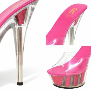 5. 【Rechercher/ルシェルシェ】キャバヒール ラメストーム 厚底 クリアサンダル[チェリーピンク][22.5cm~25.0cm][15cmヒール]