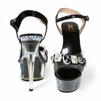 5. 【Rechercher/ルシェルシェ】キャバヒール ランダムビジューデザイン クリアサンダル[ブラック][22.5cm~25.0cm][15cmヒール]