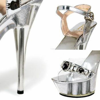 5. 【Rechercher/ルシェルシェ】キャバヒール ランダムビジューデザイン クリアサンダル[シルバー][22.5cm~25.0cm][15cmヒール]