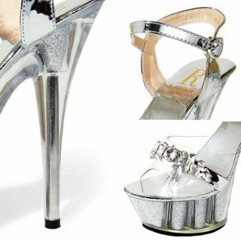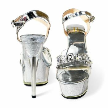 4. 【Rechercher/ルシェルシェ】キャバヒール ストーデザイン クリアサンダル[シルバー][22.5cm~25.0cm][15cmヒール]