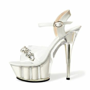 15cmヒール☆キラキラと輝くビジューが可愛いキャバドレスにピッタリなクリアサンダル♪ 【Rechercher/ルシェルシェ】キャバヒール ストーンデザイン クリアサンダル[ホワイト][22.5cm~25.0cm][15cmヒール]