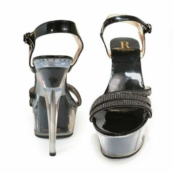4. 【Rechercher/ルシェルシェ】キャバヒール 3連ストーンデザイン ストラップ クリアサンダル[ブラック][22.5cm~25.0cm][15cmヒール]