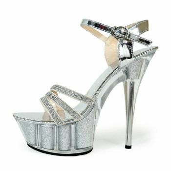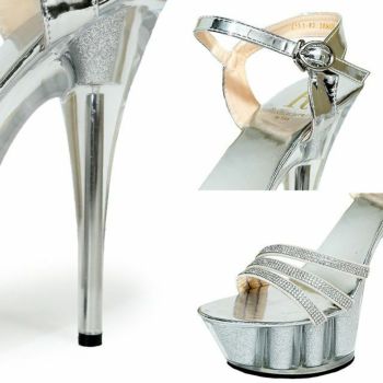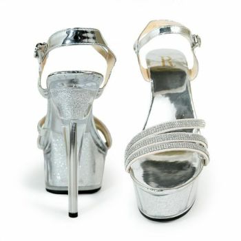 5. 【Rechercher/ルシェルシェ】キャバヒール 3連ストーンデザイン ストラップ クリアサンダル[シルバー][22.5cm~25.0cm][15cmヒール]