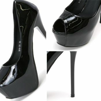 エナメルオープントゥパンプス [ブラック][22.5cm~25.0cm][14cmヒール]
