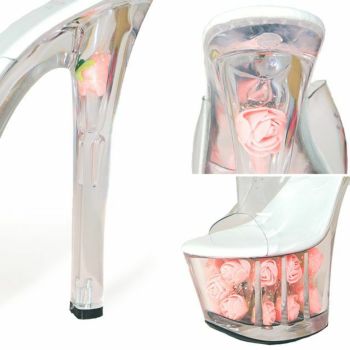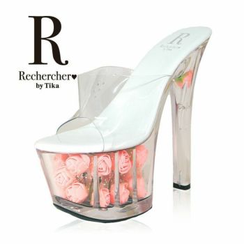 5. 【Rechercher/ルシェルシェ】キャバヒール 薔薇デザイン クリアサンダル[ホワイト×ピンク][22.5cm~25.0cm][17cmヒール]