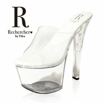 4. 【Rechercher/ルシェルシェ】キャバヒール シンプル 厚底 クリアサンダル[ホワイト][22.5cm~25.0cm][17cmヒール]