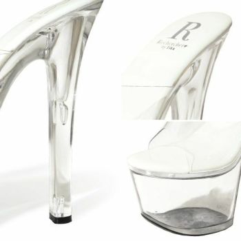 5. 【Rechercher/ルシェルシェ】キャバヒール シンプル 厚底 クリアサンダル[ホワイト][22.5cm~25.0cm][17cmヒール]