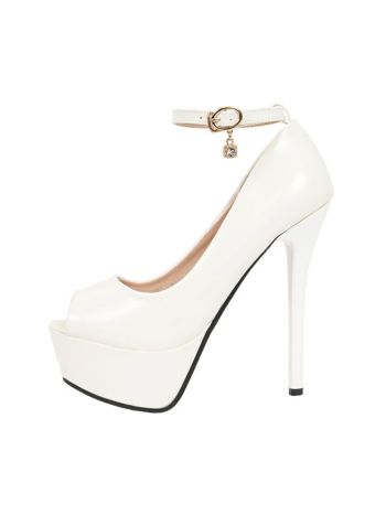 14cmヒール☆歩く度に揺れるチャーム付き♪ 【Rechercher/ルシェルシェ】ワンカラー アンクルチャーム付き ハイヒール オープントゥパンプス(ホワイト)
