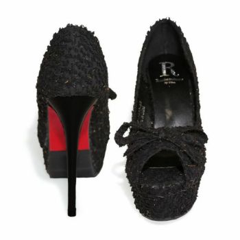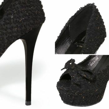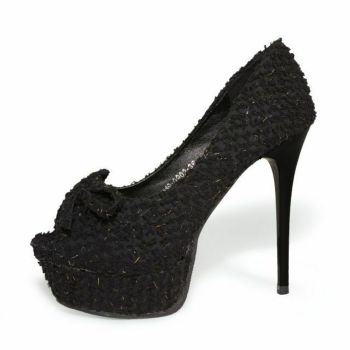 15cmヒール☆キャバドレスにピッタリなクリアサンダル♪ 【Rechercher/ルシェルシェ】キャバヒール リボンモチーフ ツイード パンプス[ブラック][22.5cm~25.0cm][13cmヒール]