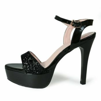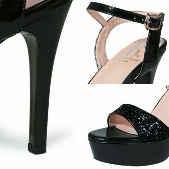 4. 【Rechercher/ルシェルシェ】キャバヒール スパンコール 厚底 サンダル[ブラック][22.5cm~25.0cm][12cmヒール]