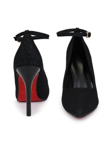 5. アンクルストラップ付き ポインテッドトゥ ラメ パンプス(ブラック)