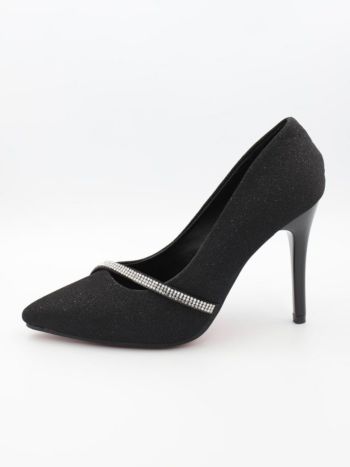 4. キラキラ シルバー ビジューライン ラメ シンプル ポインテッドトゥ パンプス(ブラック)