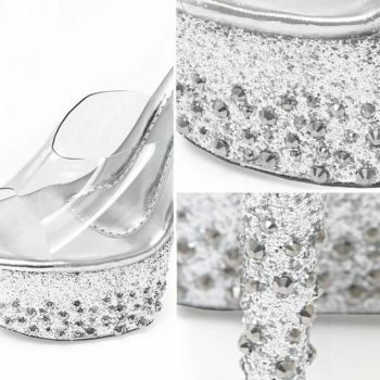 厚底部分がグリッターラメデザインになっているクリアサンダル
