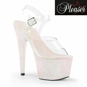 18cmヒール☆海外ブランドのキャバドレスにピッタリなストラップ付き厚底クリアサンダル♪ 【PLEASER/プリーザー】キャバヒール アンクル ストラップ グリッター ラメ 厚底 ハイヒール クリア サンダル[クリア×オーパル][22.8cm~25.4cm][17cmヒール]