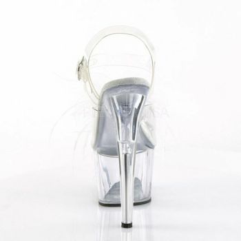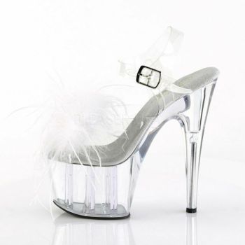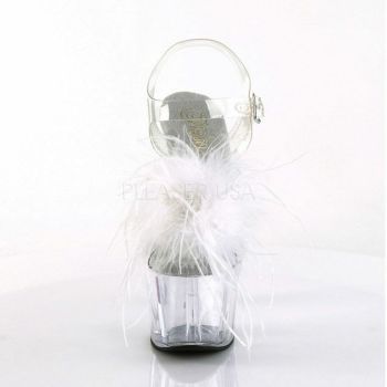 5. 【PLEASER/プリーザー】キャバヒール アンクル ストラップ ファー モチーフ 厚底 ハイヒール クリアサンダル[クリア×ホワイト][22.8cm~25.4cm][17cmヒール]