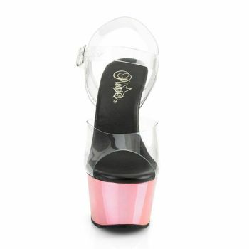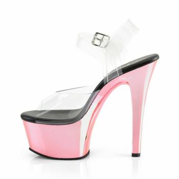 【PLEASER/プリーザー】キャバヒール アンクル ストラップ メタリック ピンク クリア 厚底 ハイヒール キャバ サンダル [ブラック×ベビーピンク][22.5cm~25.4cm][16.5cmヒール]