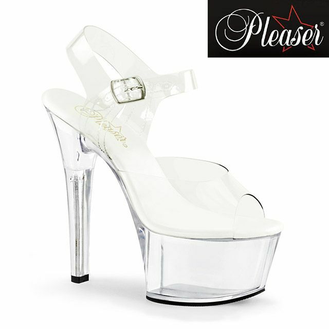 【PLEASER/プリーザー】キャバヒール アンクル ストラップ バックル付き 厚底 ハイヒール クリア サンダル [クリア][22.5cm~25.4cm][16.5cmヒール]