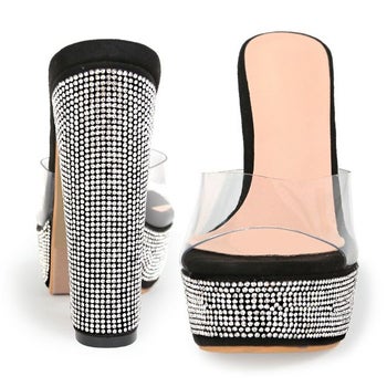 スエードストーンソール厚底クリアサンダル [ブラック][22.5cm~25.0cm][14cmヒール]