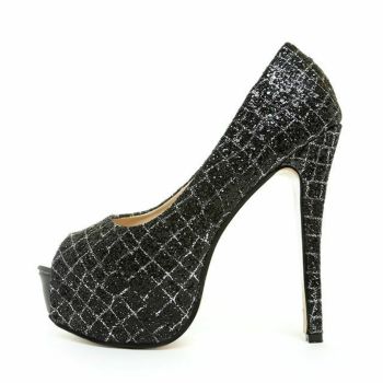5. 【Rechercher/ルシェルシェ】キャバヒール 格子デザインストーン パンプス[ブラック][22.5cm~25.0cm][14cmヒール]